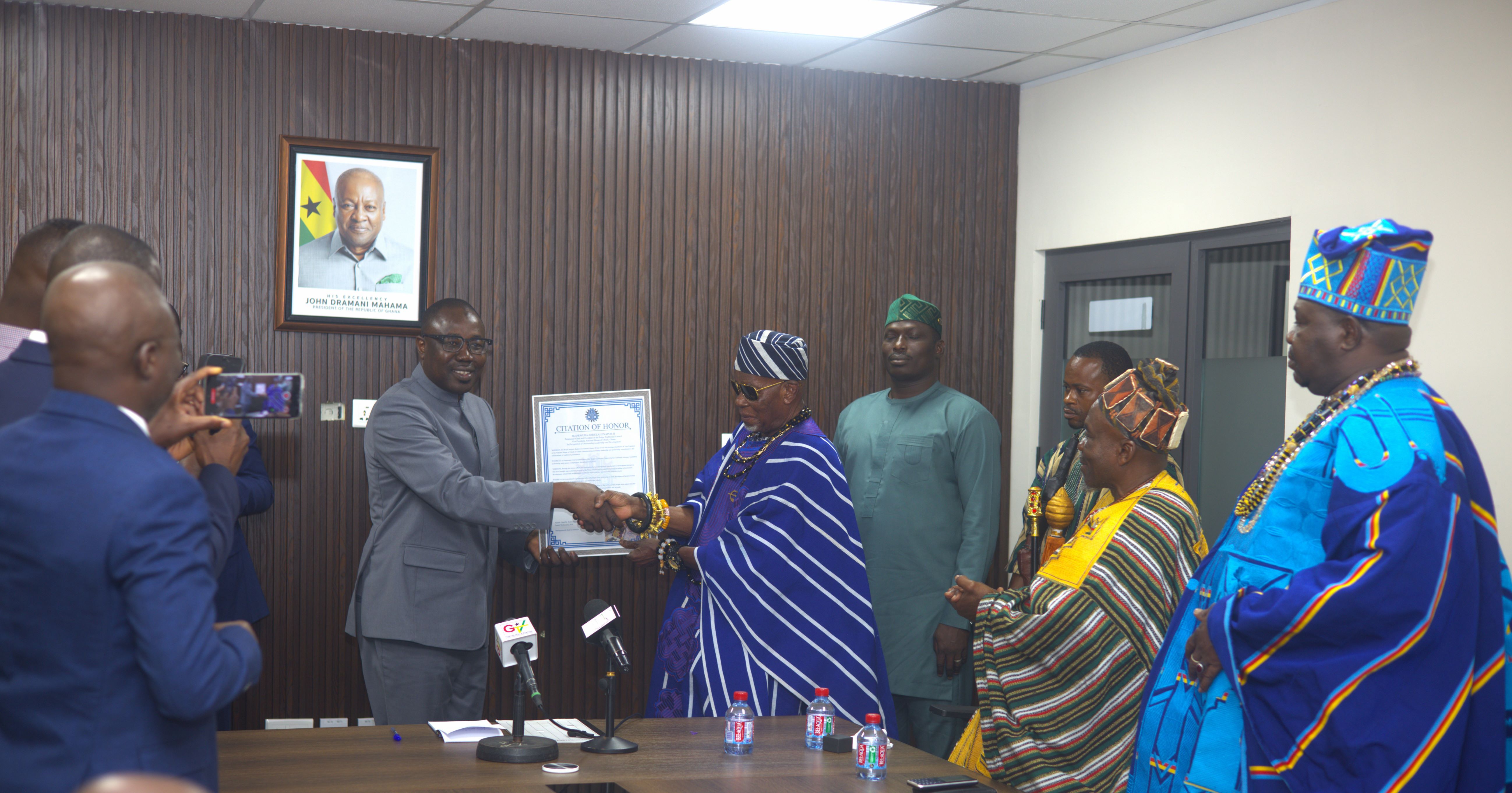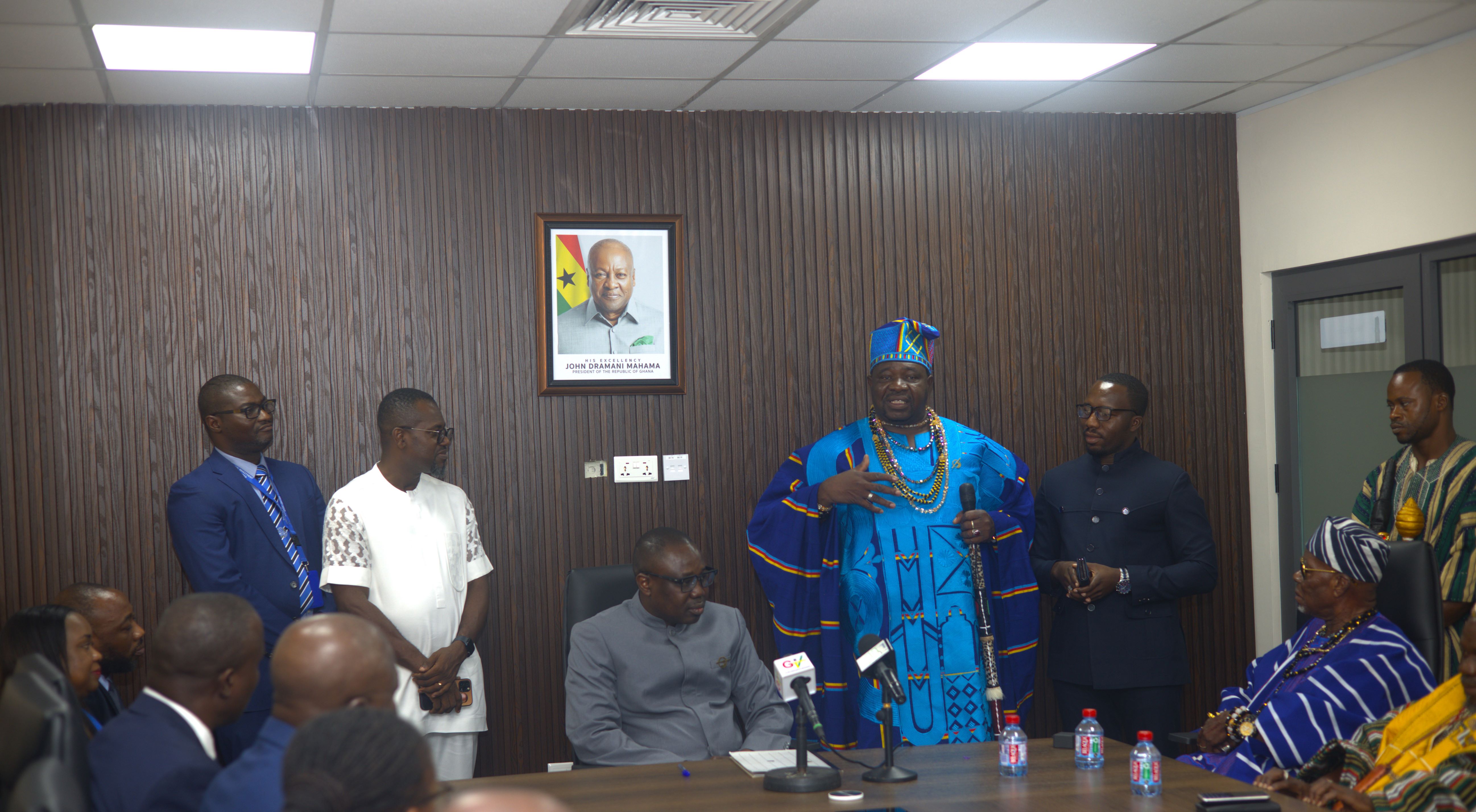 A distinguished delegation of traditional leaders from Ghana and Burkina Faso paid a courtesy visit to the CEO of the National Investment Bank (NIB) PLC, Chief Dr. Doliwura Zakaria, to commend him for his transformational leadership and contributions to national and regional development.